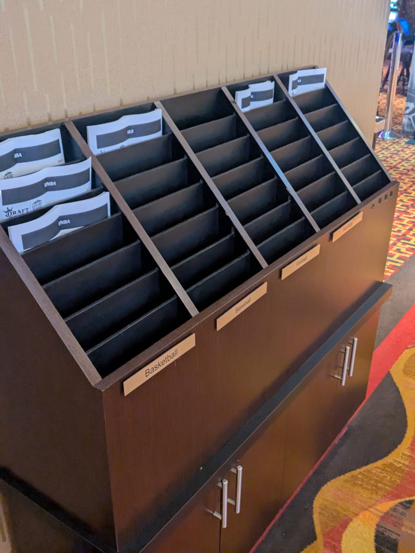 The sportsbook’s private location separates it from the casino floor, reducing distractions and creating a focused environment for bettors. Printed odds sheets are available, and the space combines lounge seating with high-top tables for flexibility. Overall, the design emphasizes comfort, visibility, and a quiet, club-like vibe.