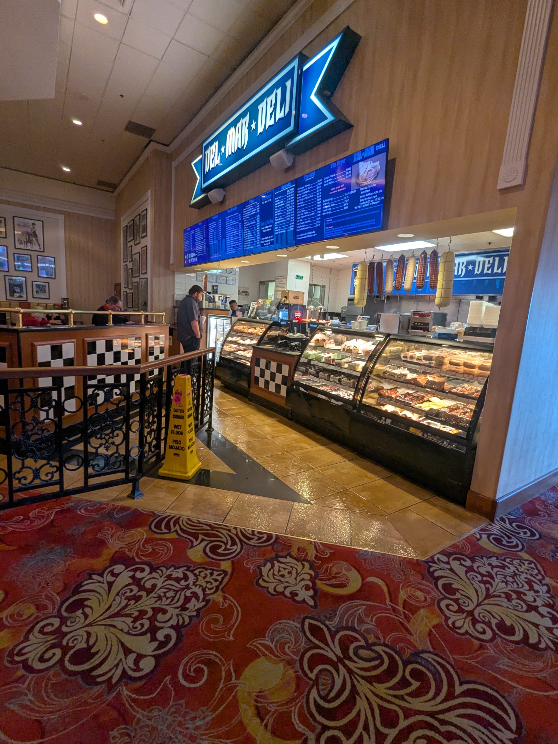 Food is a standout aspect of the South Point experience. The famous $1.50 Vienna Beef hot dog cart remains a highlight, reflecting the sportsbook’s value-oriented, blue-collar appeal. The adjacent Del Mar Deli provides soups, salads, breakfast items, and a variety of sandwiches, including corned beef, pastrami, and roast beef. Deli-style seating ensures bettors can enjoy meals without leaving the sportsbook area, and overall pricing is reasonable.